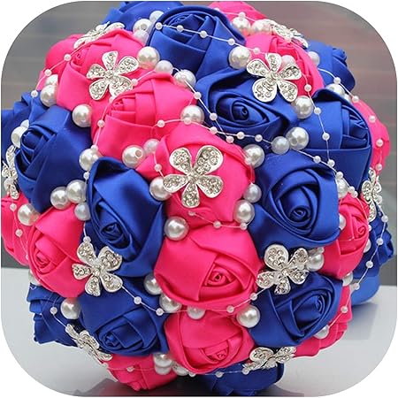 Amazon.de: FAT SHEEP-Flowers Royal Blue Fuchsia Satin Rose Bouquet Diamant Hochzeit Brautstrauß