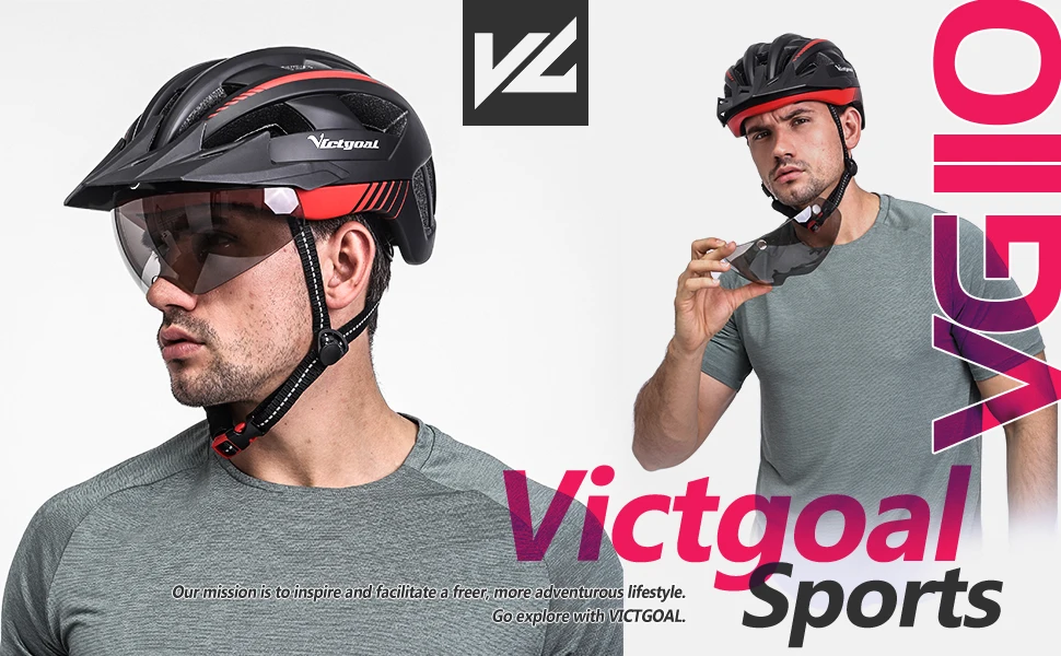 Victgoal Goggle Bike Helmet With Led Rear Light Sun Visor Men Cycling Helmet Mtb Road Bicycle Helmet M L Bicycle Helmet Aliexpress